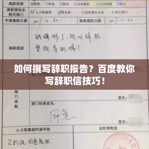 辞职,是职场生涯中不可避免的一部分,无论是因为寻求更好的发展机会,还是出于个人原因,撰写一份专业且得体的辞职报告都是非常重要的,如何在百度上找到灵感,撰写一份恰当的辞职报告呢?下面,让我们一起来探讨一下。